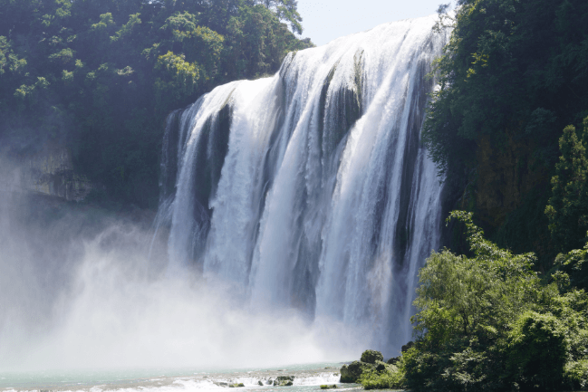 觀瀑布的過程是由遠及近的,最開始是遠遠地眺望,一層茂密的植被形成了一層天然屏障,所以只能遠遠看到山里飛流之下的黃果樹瀑布如同一條白綾射入谷底的湖水當中。遠觀之時,并不能感受到其震撼。而當我們走到近前,它才向我們展示出它的氣勢恢宏。從這個角度去看,它早已不再是一條白綾,而是一面巨大的白色屏風。仔細望去,它由數條小瀑布組成,在巖石上撞擊、跳躍,彼此爭分奪少地向終點奔去,如同戰場上馳騁的白馬,盡情地展現出自然界中速度與力量的一場盛宴。而當瀑布墜入谷底的潭水,便靜溢了下來,散起一層似輕紗般的水霧,激流漸漸變成了寧靜的湖水,蕩起細細的波紋。 如果時間在水花的碰撞與飛濺中逝去,那么天星橋更加直觀地展現出這一點。那是一道碗延曲折的石橋,跨過一個個淺水塘,水中有魚兒嬉戲,在橋上鐫刻著一年三百六十五個日期。過往的游客無不興奮地尋找著自己的生日。從一月一日走到十二月三十一日,不過是短短幾分鐘,象征著歲月如梭。回首過去的一年,仿佛就在眼前,更是在提醒我們要珍惜當下,充實地過好每一天。而我們一行人,也應該共同努力,期待一個更美好的明天。
