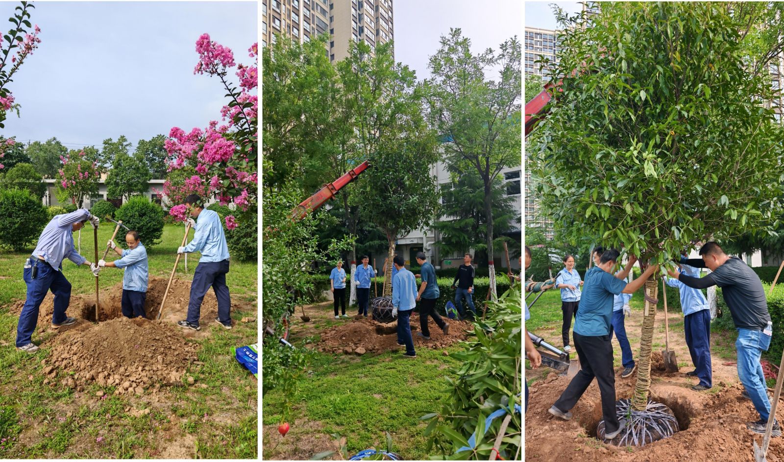 在植樹過程中,員工們相互交流植樹技巧,分享環保心得,現場氣氛熱烈而融洽。盡管當日陽光較為強烈,但大家的熱情絲毫未減,每一個步驟都認真細致地完成。經過數小時的辛勤勞動,多棵桂花樹在公司園區內 “安家落戶”,為原本的廠區增添了一片新綠與生機。