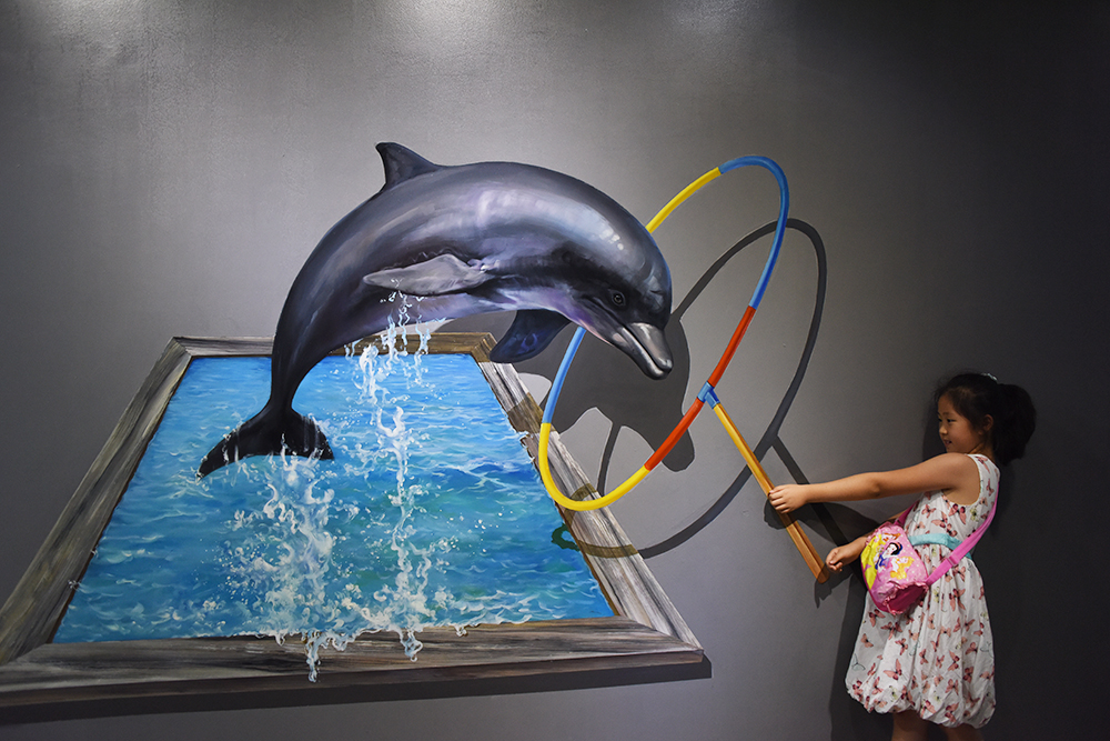 還有華夏文化館,這一層有五個展廳,都是古代皇宮里的寶貝,涉及的范圍很全面,瓷器、金銀器、書畫什么的,還有南北朝的石雕佛像,保存的都特別的完整,很震驚,真是大開眼界,不虛此行。球幕館,觀影廳為圓頂式結(jié)構(gòu),銀幕呈半球形,觀眾被包圍其中,在影院內(nèi)可感受到抬頭望去四周都是銀幕的環(huán)形視聽效果,在這里讓你感受“靜坐一室,一會傲游太空,一會潛入海底” 的夢想之旅,欣賞只有宇航員和潛水員才能看到奇幻景色,飛躍星空、登陸火星、穿越海洋,一切仿如夢境之旅。不過看完之后頭會很暈,不太舒服。毛主席像章館,珍藏的像章大小不等,圓形的,方的,心形的都有。由上萬枚像章組成的東方紅,太陽升,學(xué)習(xí)雷鋒的巨型標(biāo)語墻,太震撼了!還有天安門、紅語錄、長城等五星造型也巍然壯觀。地質(zhì)博物館,這里匯聚著各類各種各樣的石頭,不得不感嘆大自然的神奇,每塊石頭的紋路啊顏色各不同,竟然還有26個字母的,還有數(shù)字的,各種造型的石頭,千姿百態(tài),各有風(fēng)采。 第四天去老虎灘,園區(qū)自然風(fēng)光秀麗,山海互映,景色迷人。我們先去了珊瑚館,里面是各種珊瑚和魚類,珊瑚是千萬熱帶魚兒的家,它們形成了—道海底獨具特色的風(fēng)景線。珊瑚館以聲、光、影像等高科技及惟妙惟肖的仿生巖石造景襯托,一個色彩斑斕的海底世界生動完美地展現(xiàn)到游眾面前。分別陳示有稀有的珊瑚樹,形似榔頭的大榔頭珊、色彩富于變化的玫瑰珊,及香菇珊瑚、綠腦珊瑚、寶石花珊瑚、皮革珊瑚、海百合珊瑚等,個中珍品,價值非凡。還有五顏六色的魚兒、大量水母游弋其中,共同組成了絢爛的風(fēng)景線。 出了珊瑚館趕去極地館看表演,上二樓就是海洋動物表演場,大型的海洋哺乳類動物的表演劇場,在這里白鯨、海豚、大型海洋哺乳類動物將為您奉上精彩表演,場內(nèi)觀眾爆滿啊。優(yōu)美可愛的大白鯨一出場就贏得大家熱烈的掌聲和歡呼聲,飼養(yǎng)員踩著它優(yōu)雅的游弋水中,竟然還會唱歌、又乖巧又可愛啊!還有海豚一會跳起來空中鉆圈,一會又頂皮球轉(zhuǎn)圈圈,算算術(shù),萌萌的好聰明啊!