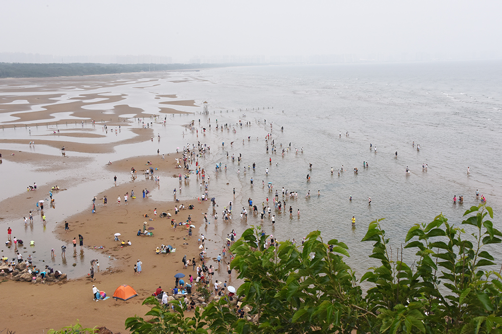 第四天 在秦皇島,品味鴿子窩的閑散靜謐 鴿子窩公園是北戴河的標志性景點,到北戴河必去的地方就是鴿子窩。我們剛到的時候這里正在閉園裝修,特別失望,以為到返回之前都不能進去參觀了,沒想到老天還是很眷顧我們的,在我們離開的前一天竟重新售票了! 一大早吃完早飯,我們便隨著人潮一起進入了公園,穿過一片青草地,躍然于眼前的是一片巨大的、開闊的沙灘海域——大潮坪。一行人迫不及待的拎著鞋光著腳沖了進去,淺淺的海水溫婉的拂過腳面,細細看去,竟然能看到許多小魚在四周游樂!海浪規律的卷起又落下,帶來無數蛤蜊、小蝦、小蟹,這是大海的饋贈,是生命的力量。
