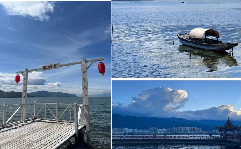 第五天 大理(洱海) 今天是特別有意思的一天,也是特別難忘的一天,今天的行程是繞洱海一圈,體驗整個洱海的魅力,吹著洱海畔的風,感受最柔軟的水,天是藍色的,海也是藍色的,人也藍色的,美的就像一幅畫,很和諧,很舒服。洱海邊的古鎮(zhèn)也是值得留念,雙廊古鎮(zhèn)、喜洲古鎮(zhèn)都有自己的特色,這個古鎮(zhèn)位于蒼山之麓,是個歷史悠久的白族古鎮(zhèn),保留了許多傳統(tǒng)建筑和文化遺產。有生之年,一定要去一次洱海,洱海的風景總是一眼萬年的。